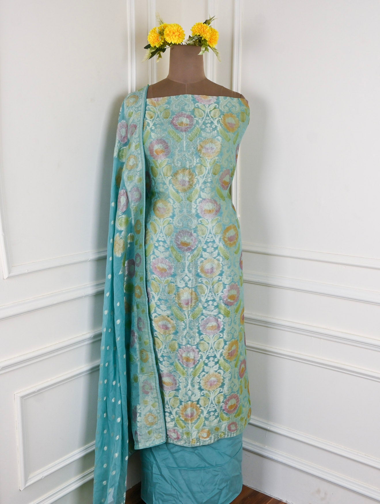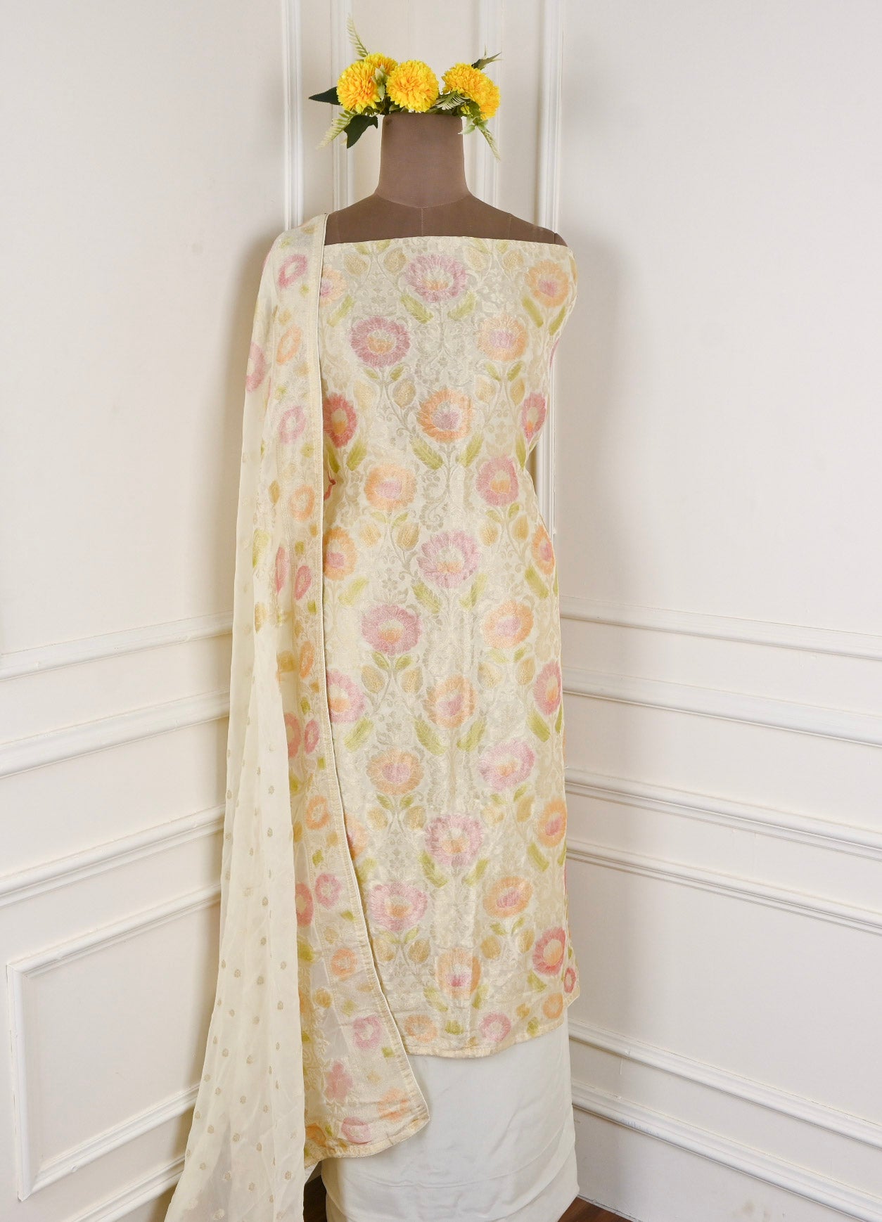 - Accompanied with an unstitched Crepe bottom and Banarasi dupatta.