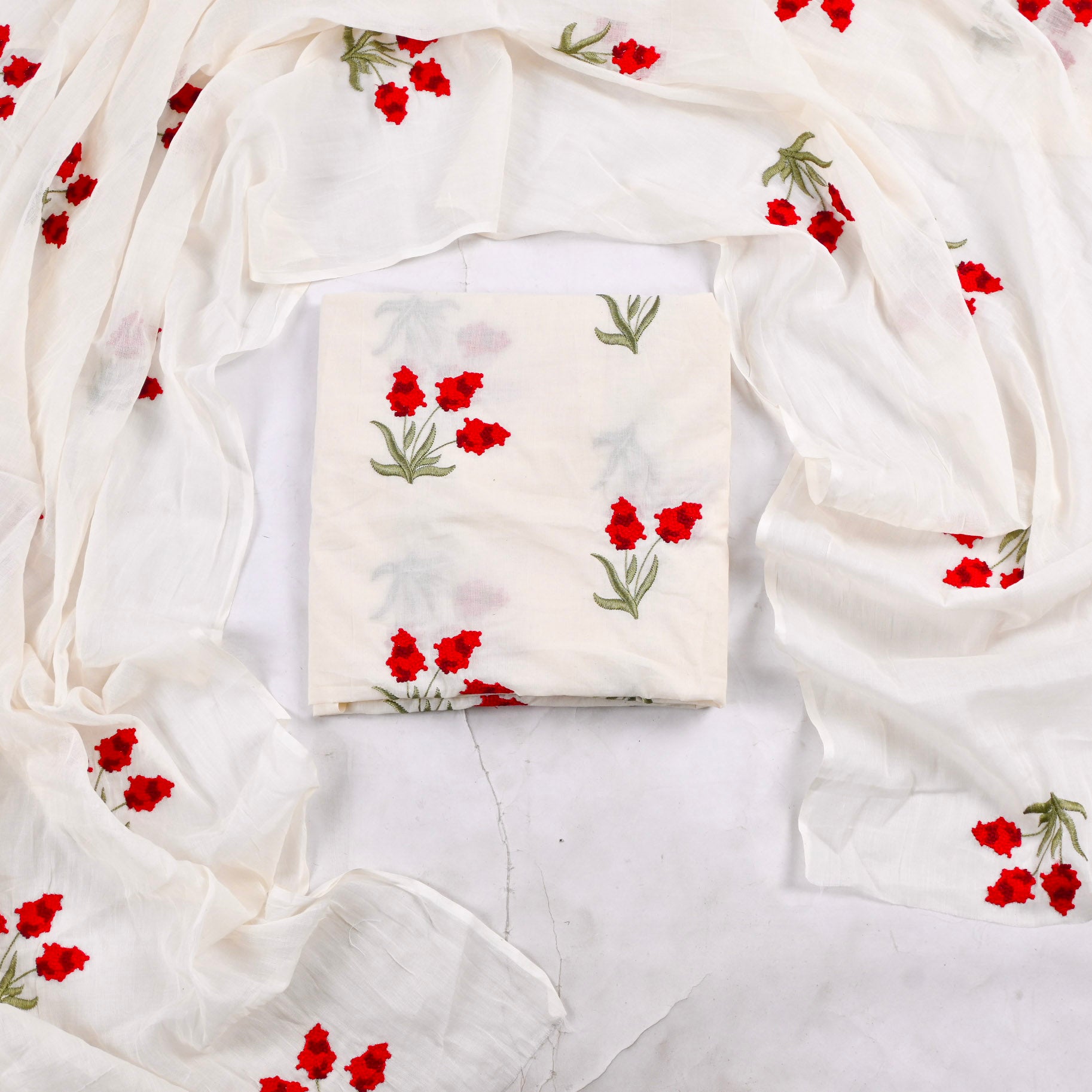 - Accompanied with an unstitched Cotton shirt and Cotton dupatta.