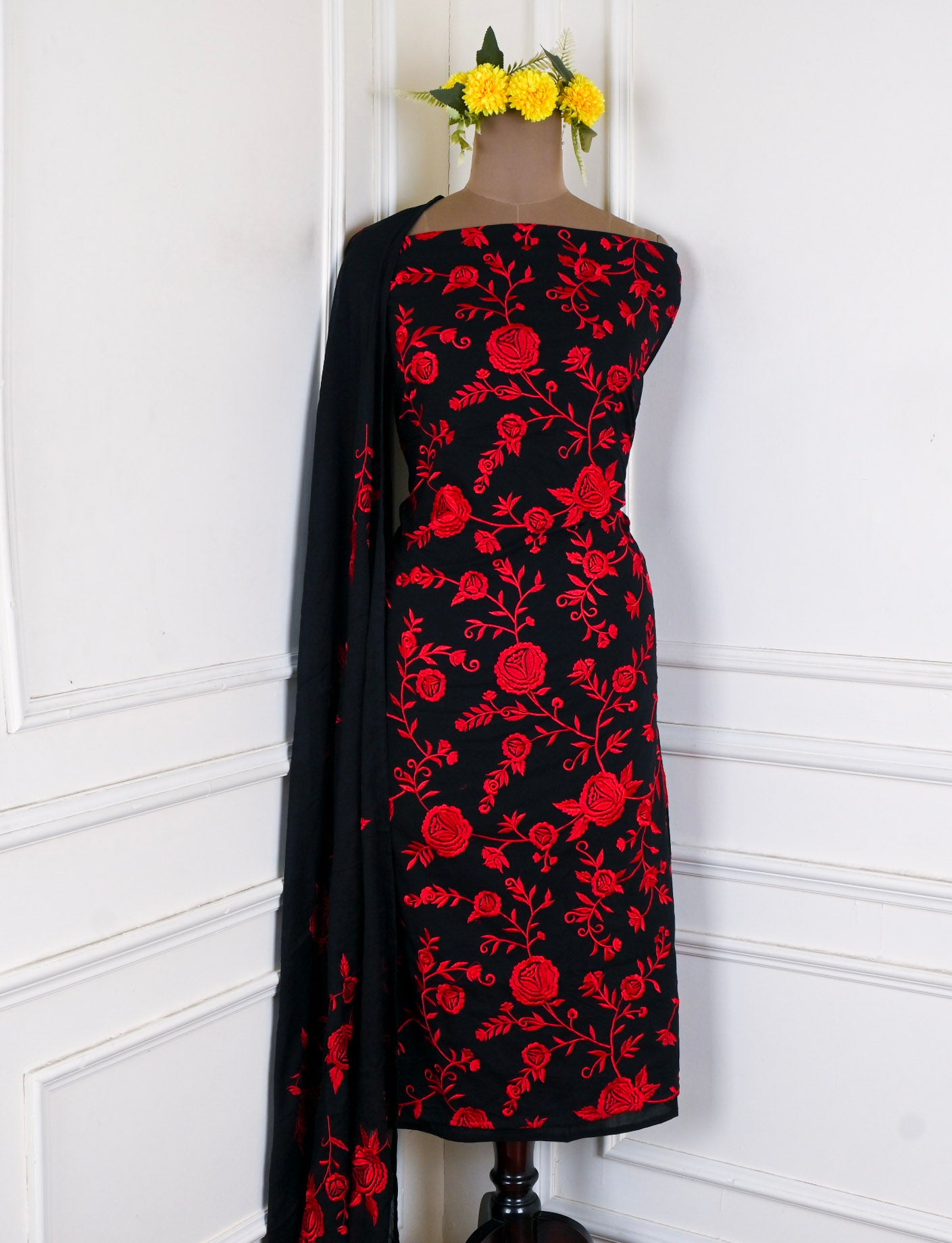 - Accompanied with an unstitched cotton Bottom and Cotton dupatta.