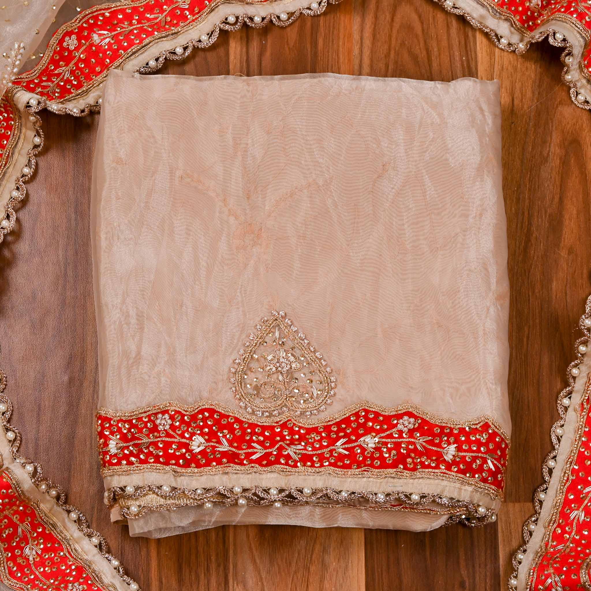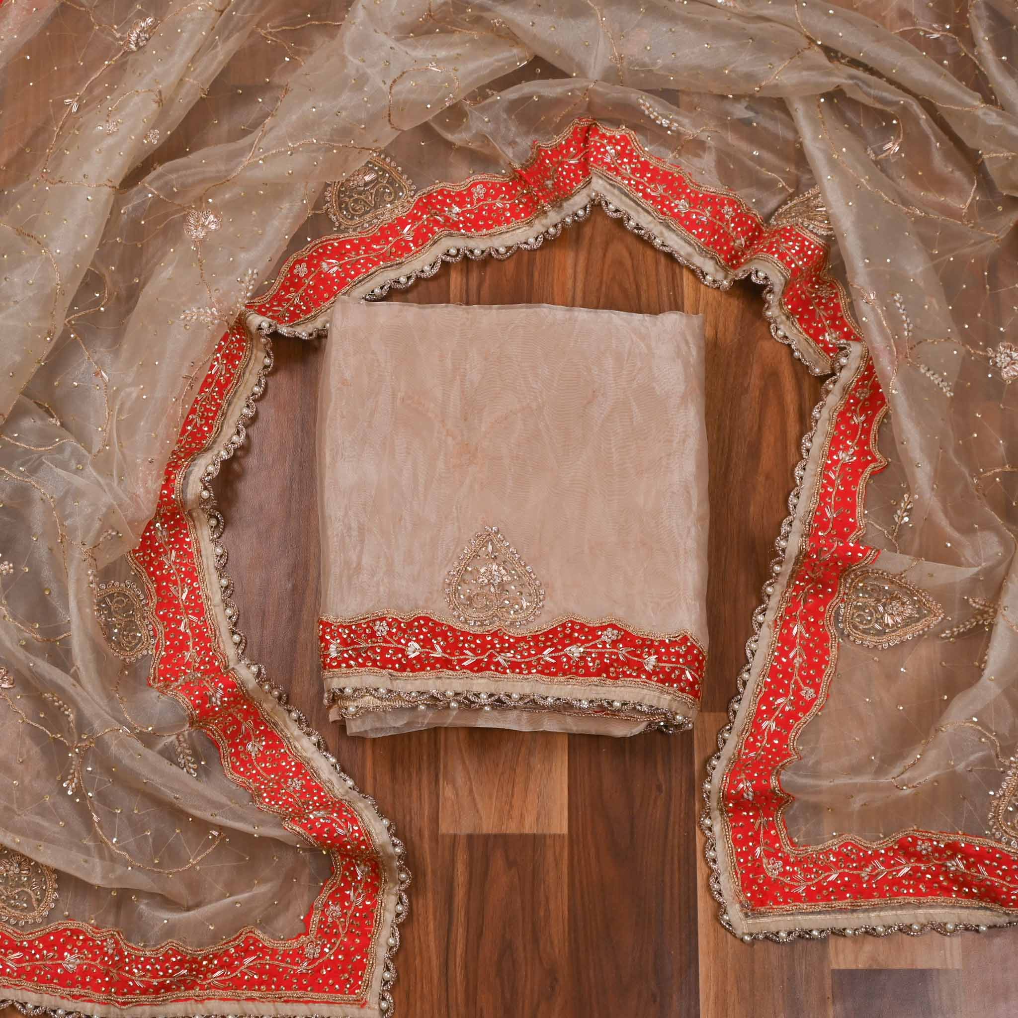 - Accompanied with an unstitched Crepe bottom and Glass shimmer dupatta.