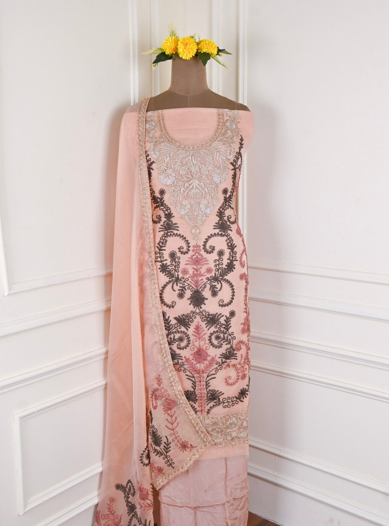 - The Unstitched Suit is gracefully elevated with exquisite detailing and embroidered work.