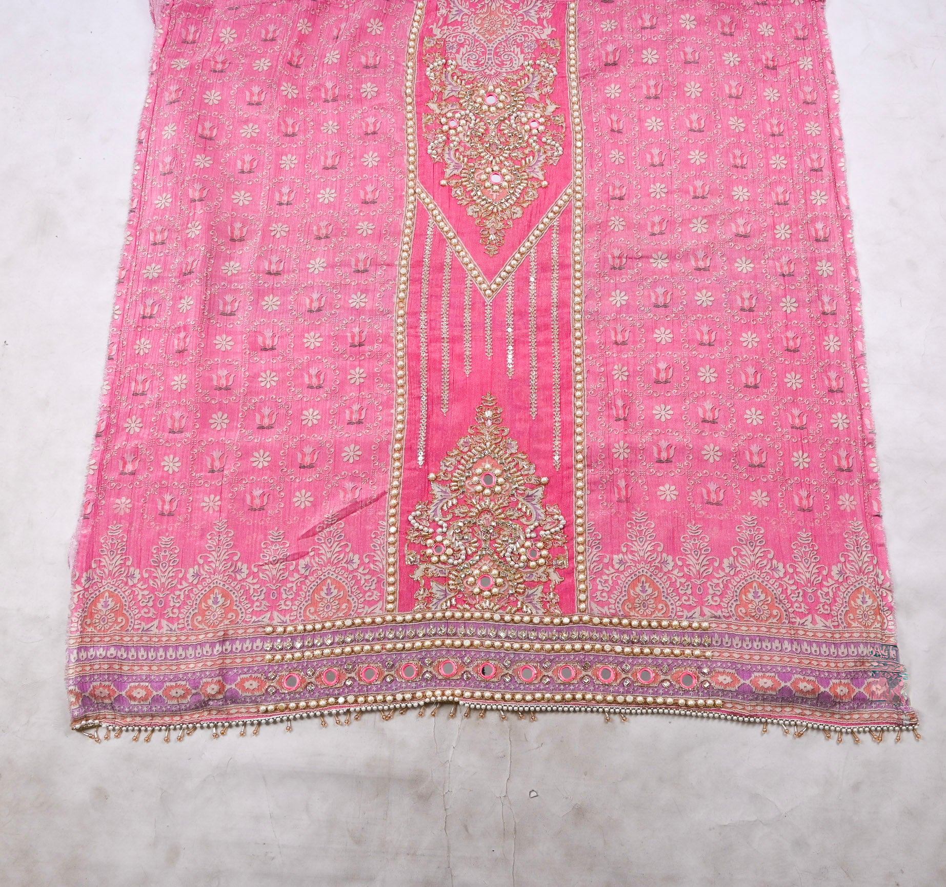 The Crush Shimmer Pink Unstitched Suit features a luxurious purple fabric with a subtle shimmer, perfect for creating a tailored outfit that reflects your personal style. This unstitched material allows for precise customization, making it ideal for formal and festive wear. Its rich texture and elegant color provide a sophisticated foundation for a unique, expertly crafted ensemble.