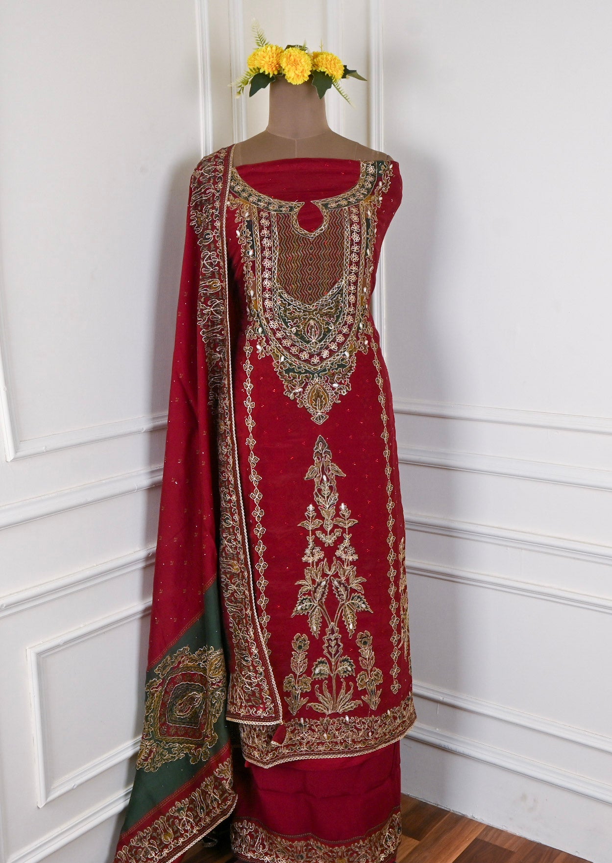 - Accompanied with an unstitched Crepe bottom and Organza dupatta.