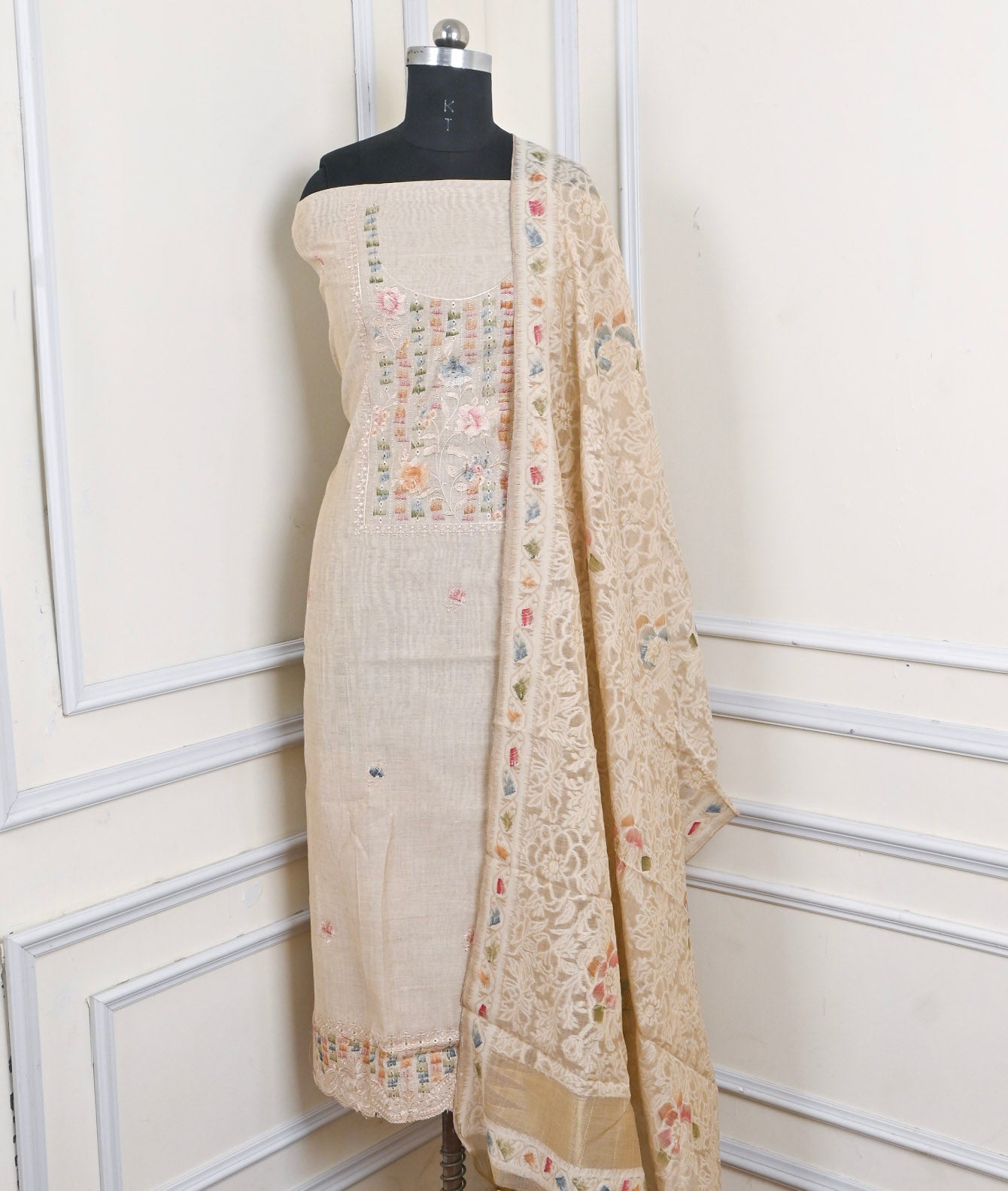 - Accompanied with an unstitched Cotton bottom and Linen dupatta.