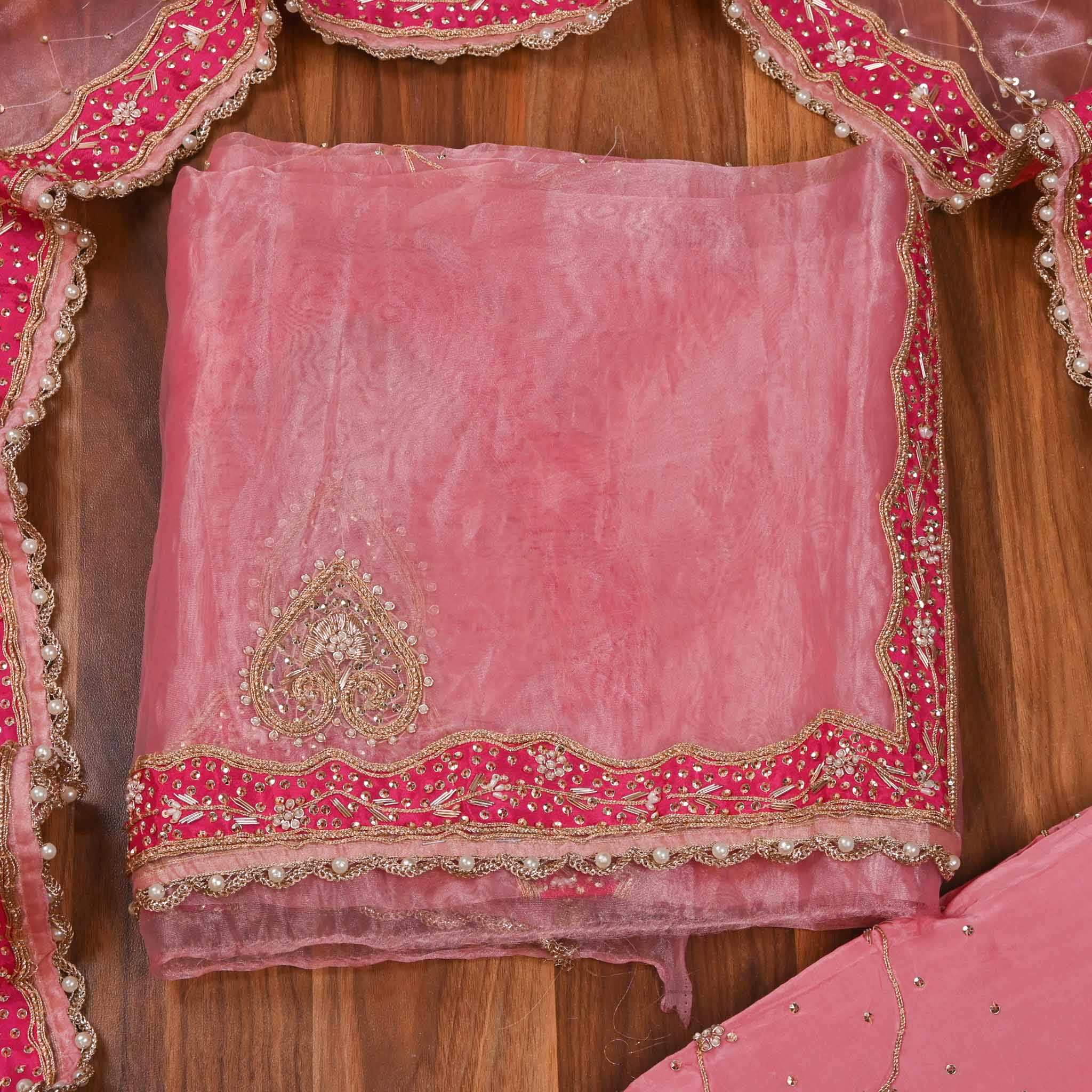 The Glass Shimmer Pink Unstitched Suit offers a luxurious fabric with a subtle shimmer, perfect for crafting a bespoke outfit. Its unstitched form allows for precise tailoring to achieve an impeccable fit, making it ideal for special occasions. The soft pink hue combined with the delicate shimmer enhances elegance, providing a sophisticated foundation for your personalized design.