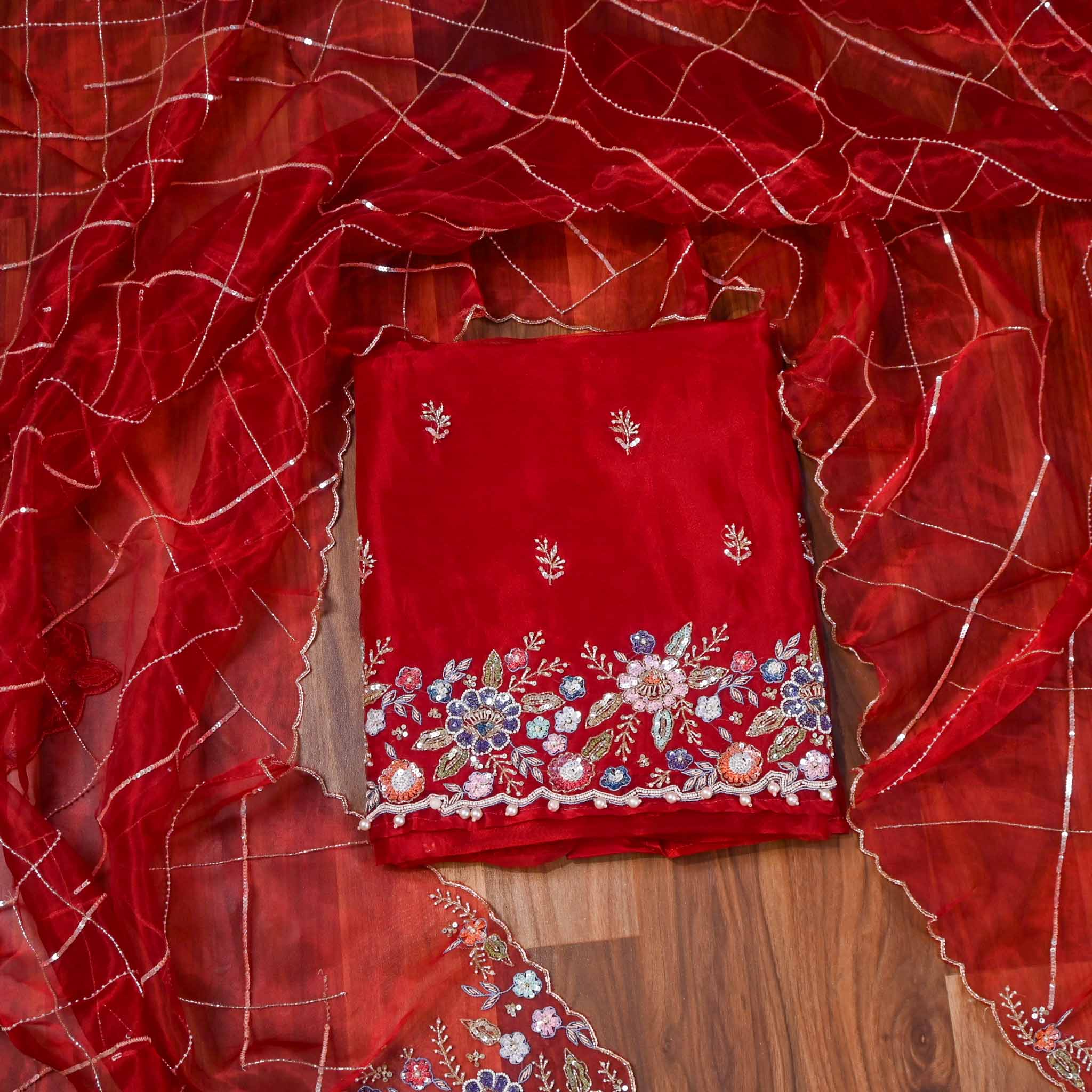 The Glass Shimmer Red Maroon Unstitched Suit offers a luxurious fabric with a subtle shimmer, perfect for creating bespoke attire. Its deep red maroon shade provides a rich, elegant base suitable for formal and festive wear. Designed for expert tailoring, this unstitched suit allows you to craft a personalized outfit that combines sophistication with comfort and style.