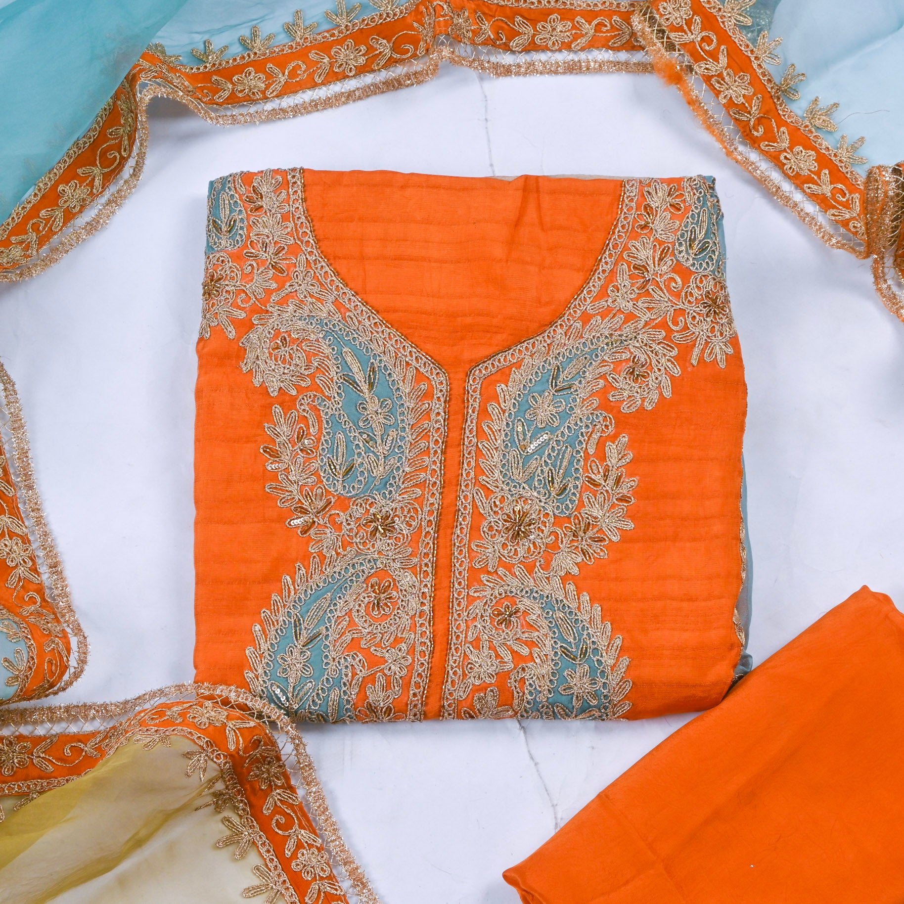 - Accompanied with an unstitched Crepe bottom and Organza dupatta.