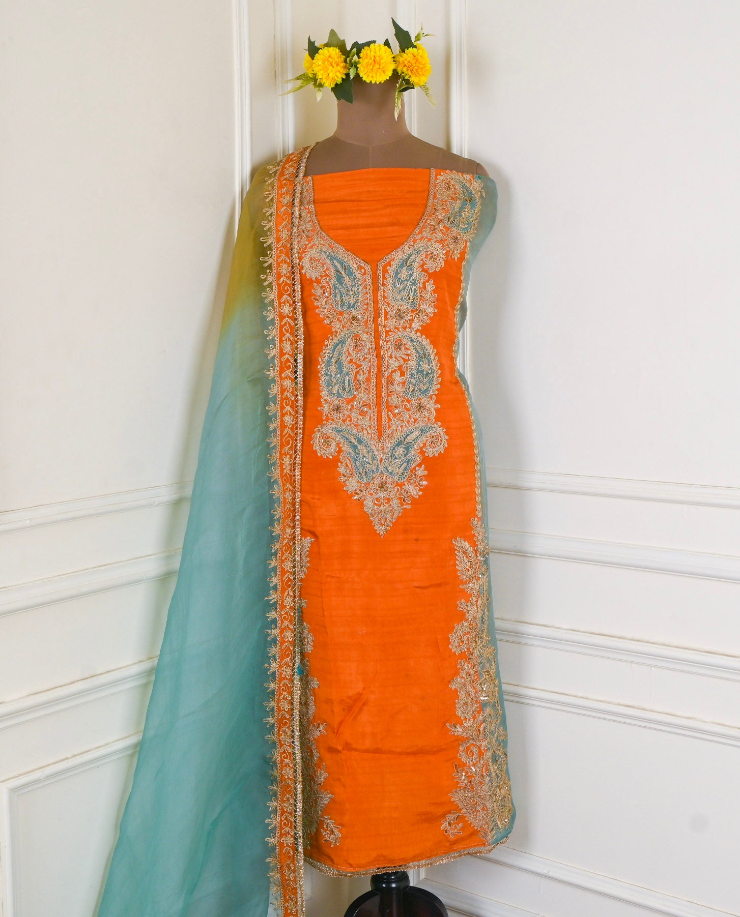 This Orange Khadi Unstitched Suit represents authentic Indian textile tradition at its finest. Khadi's hand-spun, hand-woven construction delivers superior breathability and a distinctive texture that mass-produced fabrics cannot replicate. The unstitched format empowers you to work with a tailor for a bespoke fit tailored to your exact measurements and style preferences. Orange's sophisticated neutrality transitions effortlessly across seasons and occasions.
