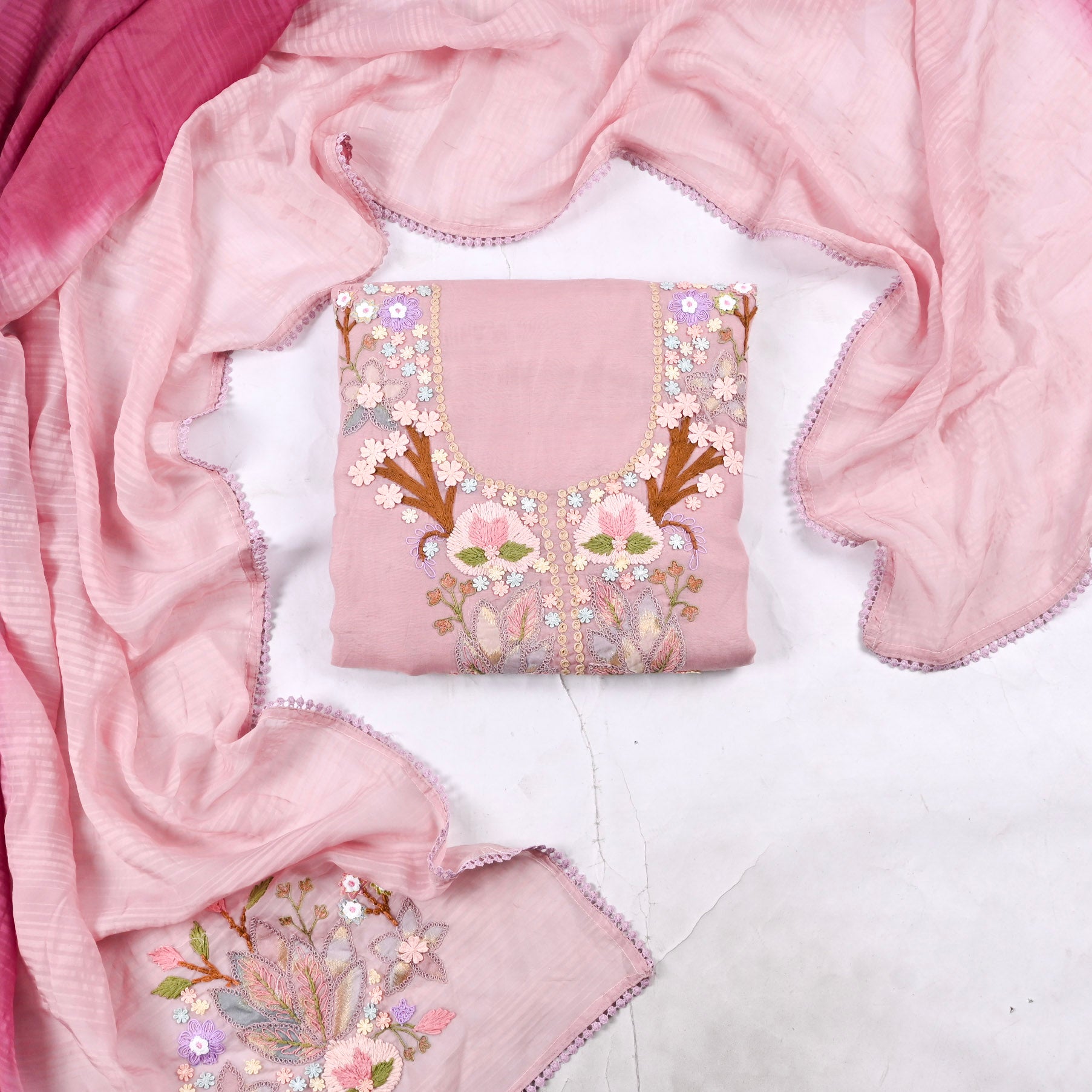 Mul Cotton Pink Unstitched Suit Crafted from premium mul cotton, this unstitched suit offers the perfect foundation for custom tailoring. The soft, breathable fabric ensures comfort throughout the day, making it ideal for warm climates and everyday wear. The elegant pink hue complements a variety of skin tones and styling preferences. As an unstitched piece, you have complete creative control over the fit and design—work with your tailor to achieve a silhouette that flatters your frame perfectly. Mul cotton's natural durability means your suit will maintain its quality through multiple washes and seasons of wear.