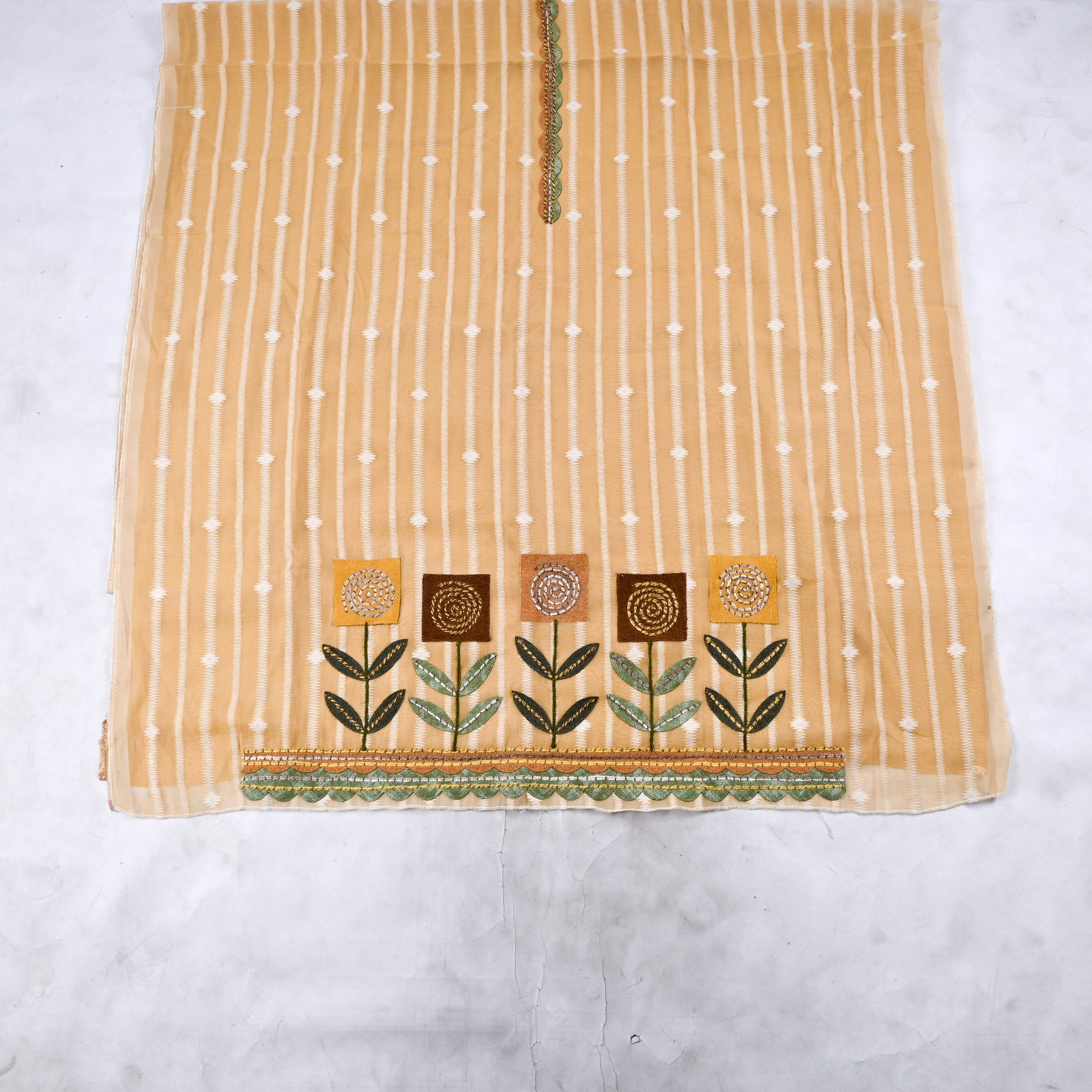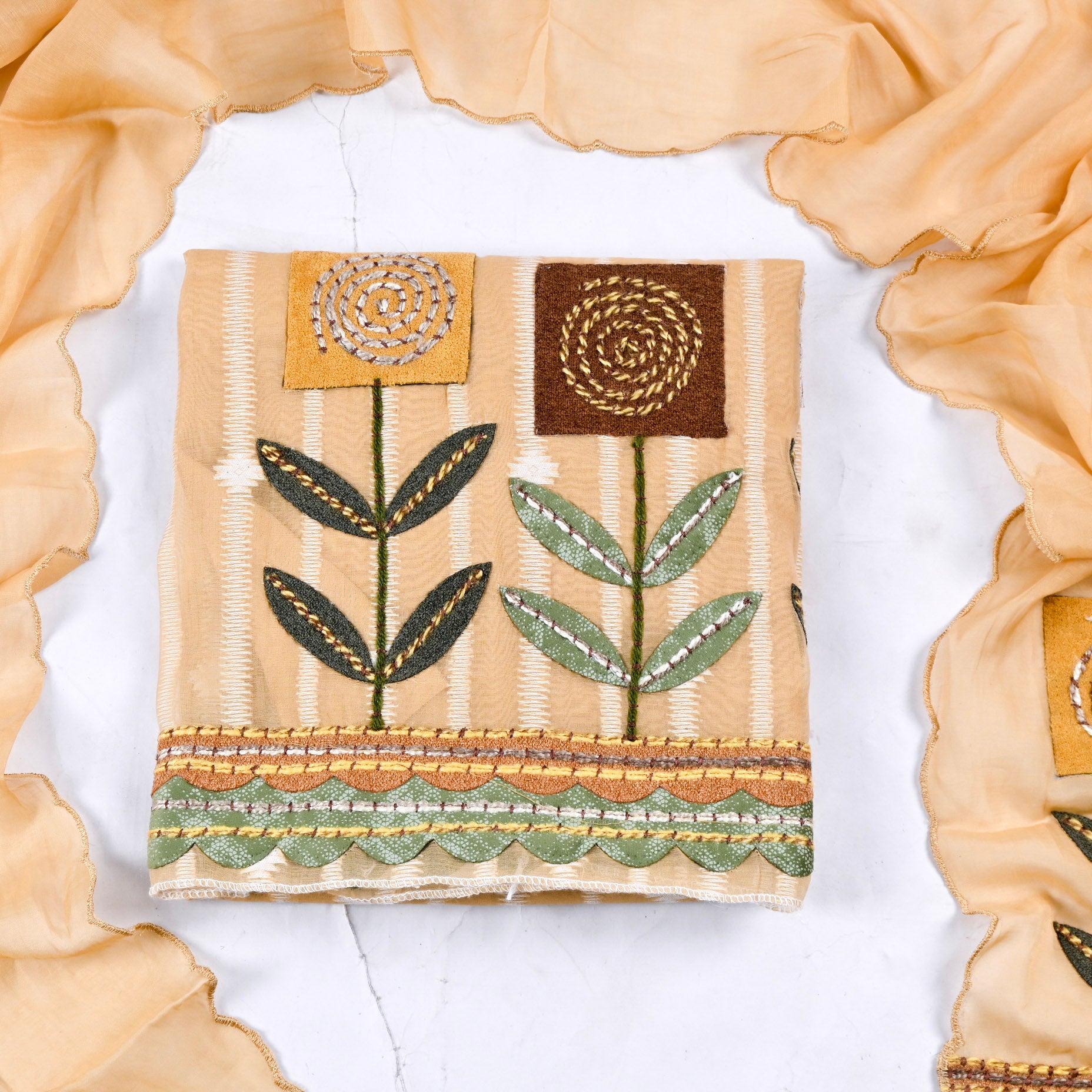 - Unstitched Suit in premium Mul Chanderi Cotton fabric.