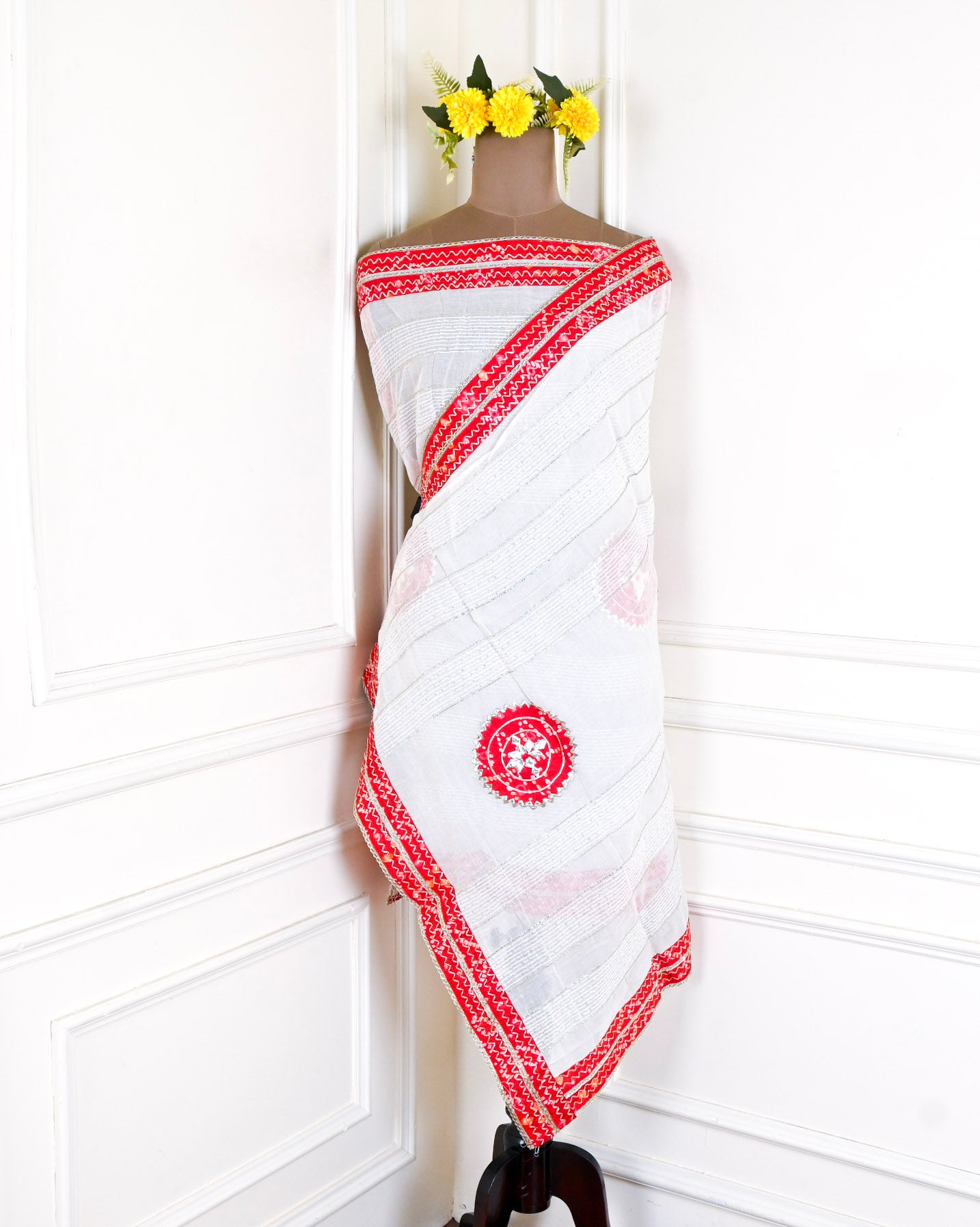 - Accompanied with an unstitched Cotton bottom and Cotton dupatta.