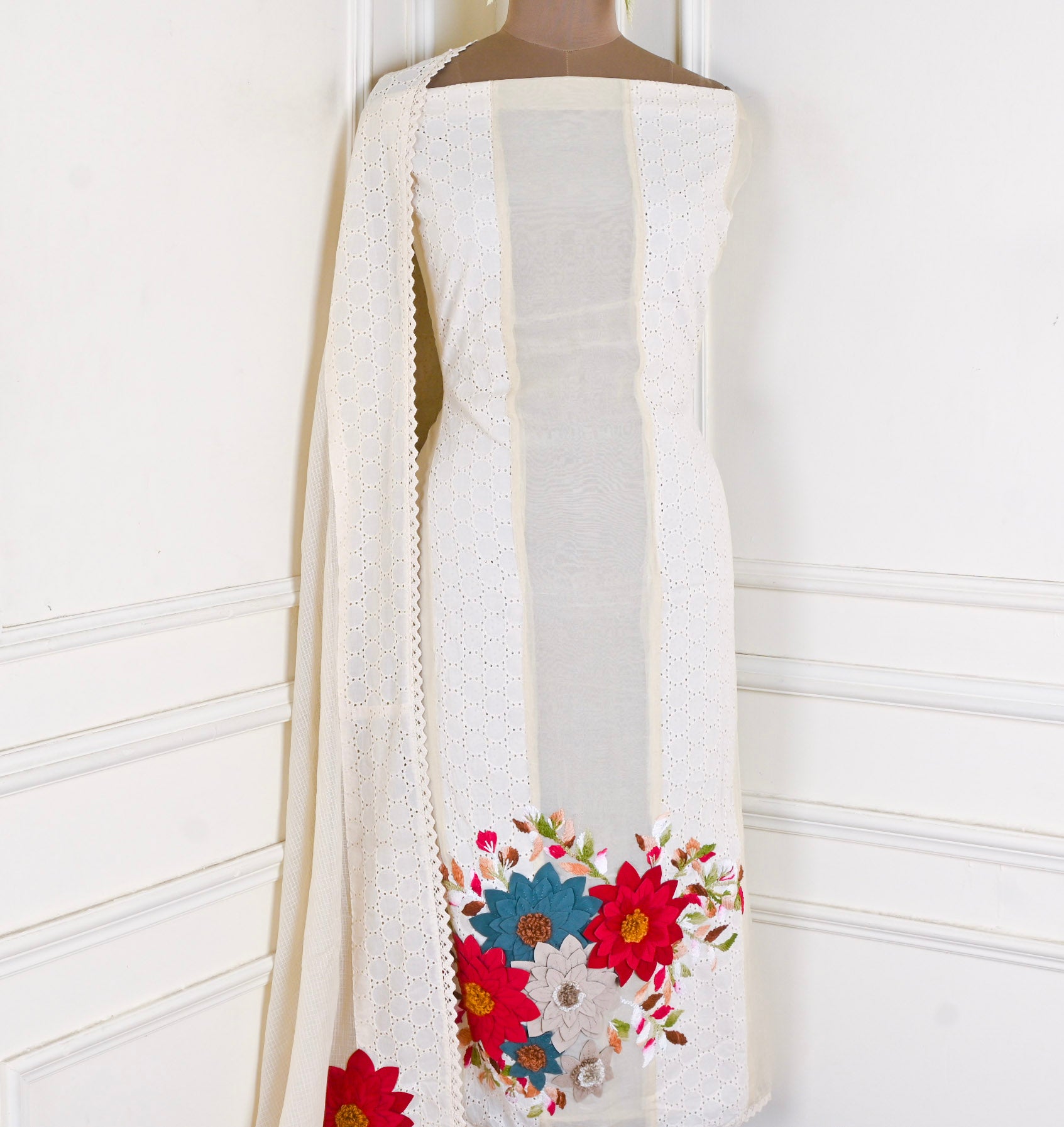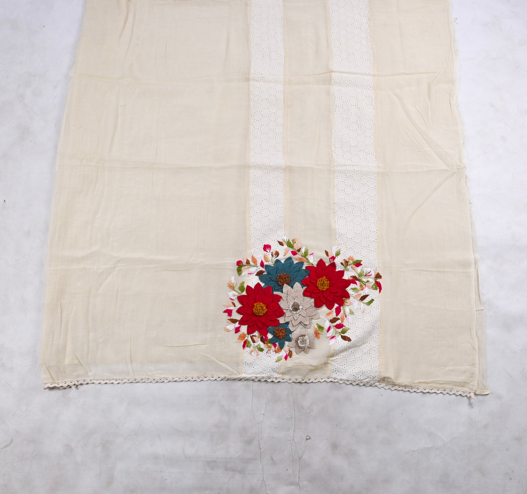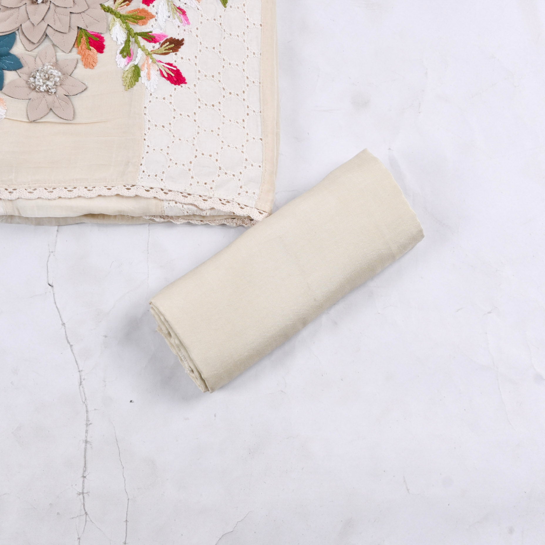 Mul Cotton Cream Unstitched Suit Crafted from premium mul cotton, this unstitched suit offers the perfect foundation for custom tailoring. The soft, breathable fabric ensures comfort throughout the day, making it ideal for warm climates and everyday wear. The elegant cream hue complements a variety of skin tones and styling preferences. As an unstitched piece, you have complete creative control over the fit and design—work with your tailor to achieve a silhouette that flatters your frame perfectly. Mul cotton's natural durability means your suit will maintain its quality through multiple washes and seasons of wear.
