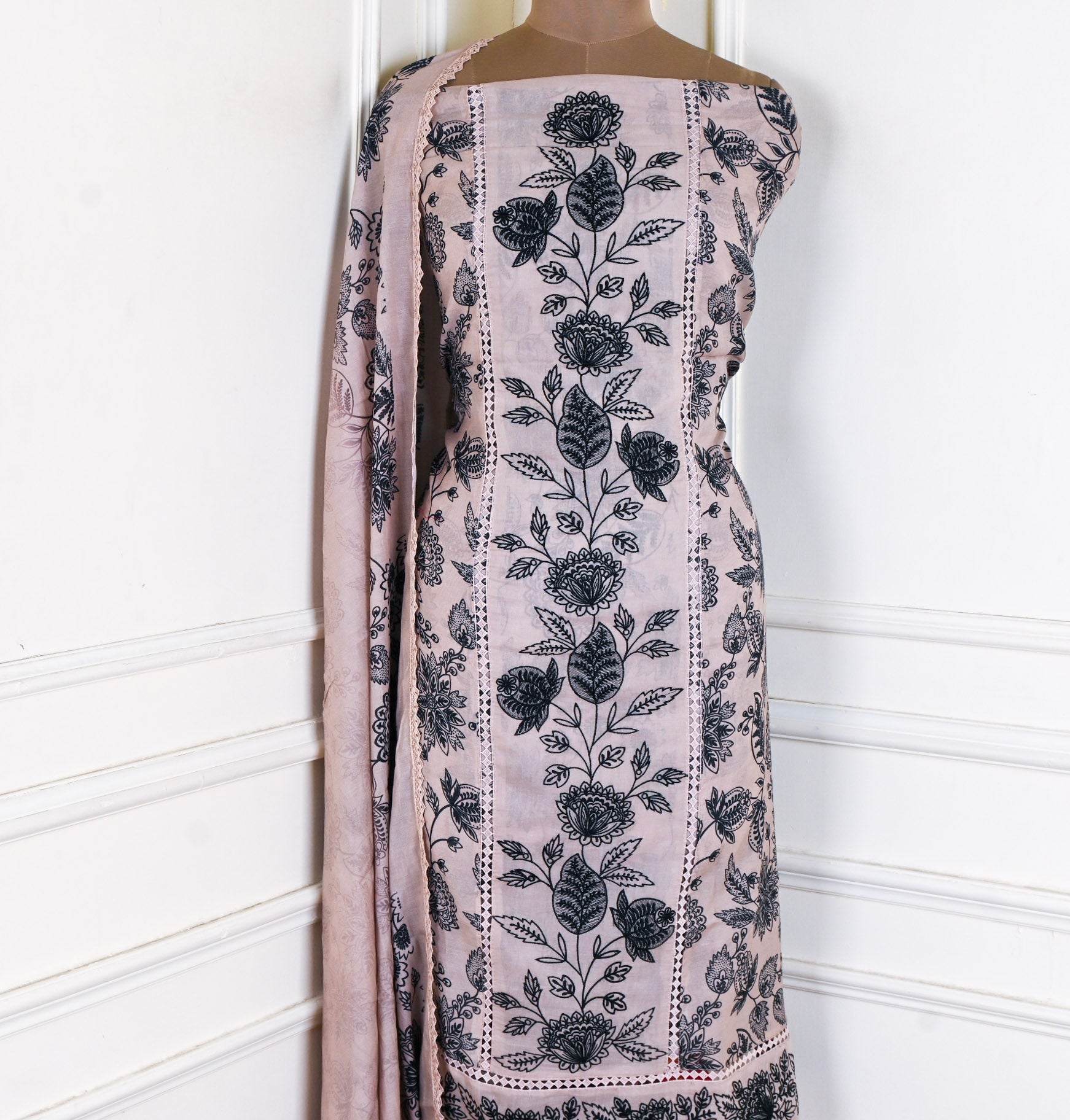 - Accompanied with an unstitched muslin bottom and Mul Cotton dupatta.