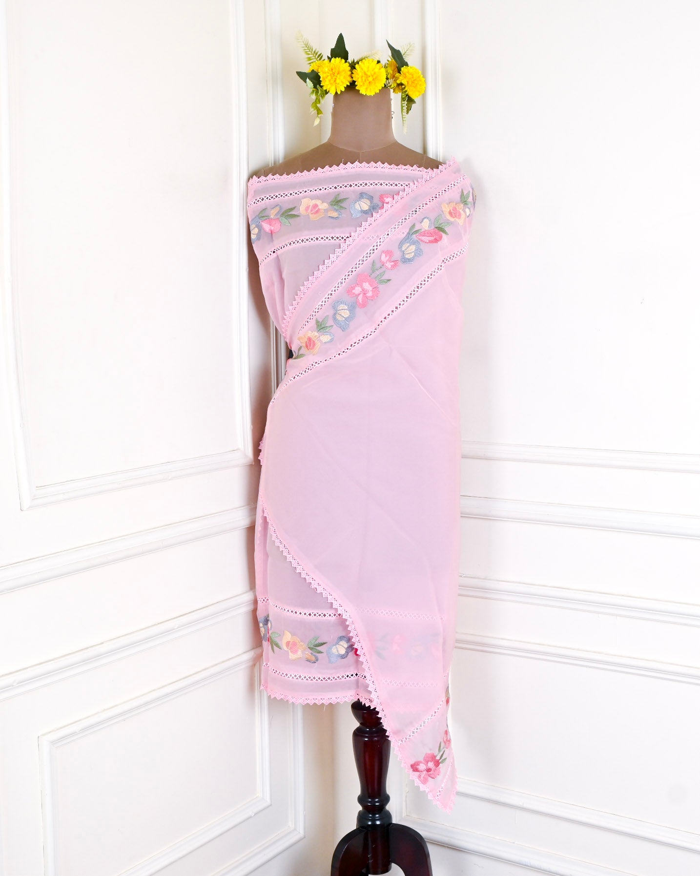 - Unstitched Suit in premium Organza fabric.