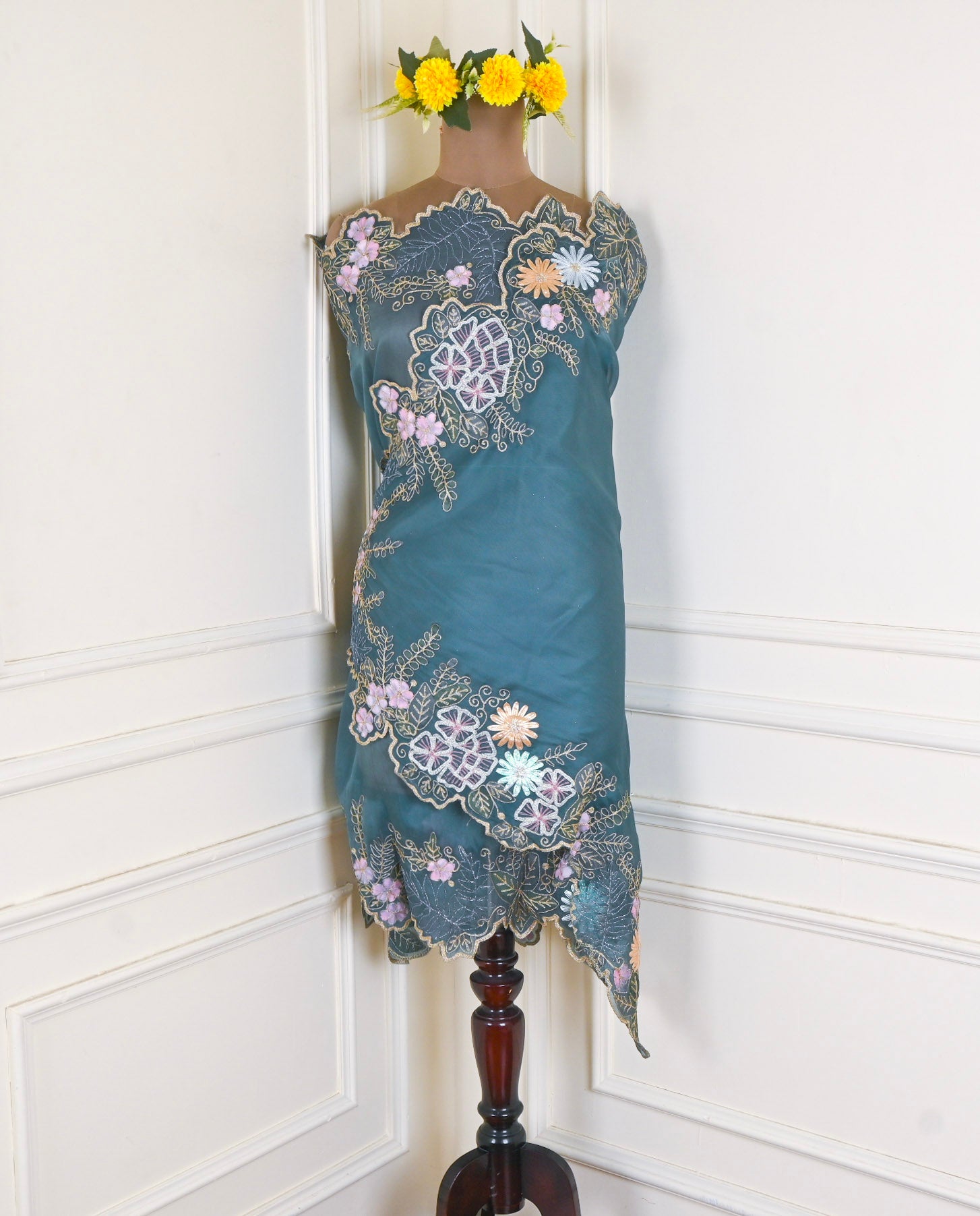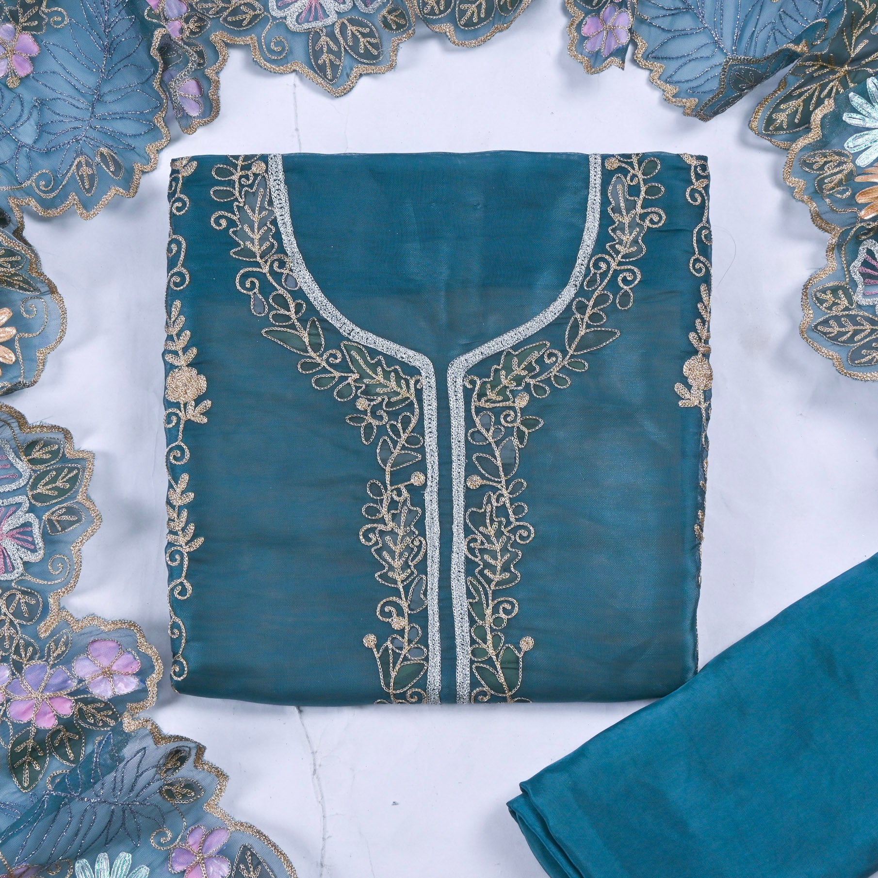 This exquisite Organza Blue Unstitched Suit, a timeless choice for those who appreciate refined craftsmanship. The lightweight organza fabric drapes beautifully, offering an ethereal quality perfect for both festive occasions and everyday elegance. Its unstitched design provides complete customization freedom, allowing you to tailor the fit and style to your exact preferences.