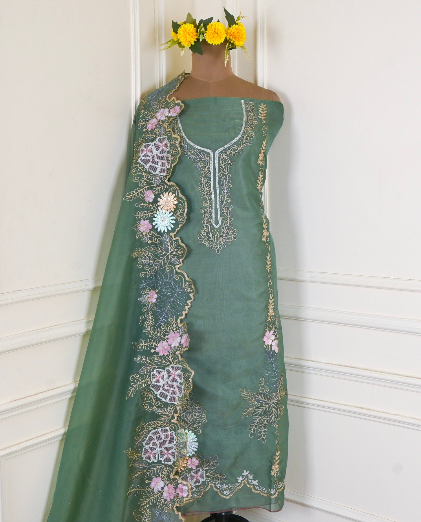 - Accompanied with an unstitched Crepe bottom and Organza dupatta.