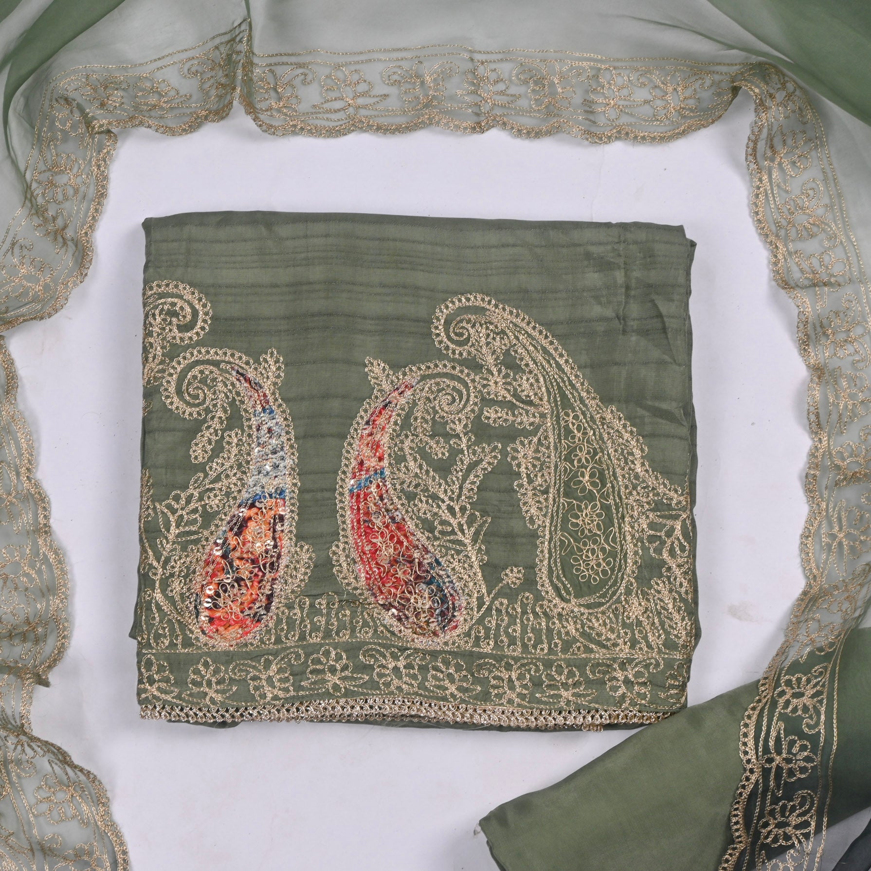- Accompanied with an unstitched Crepe bottom and Organza dupatta.