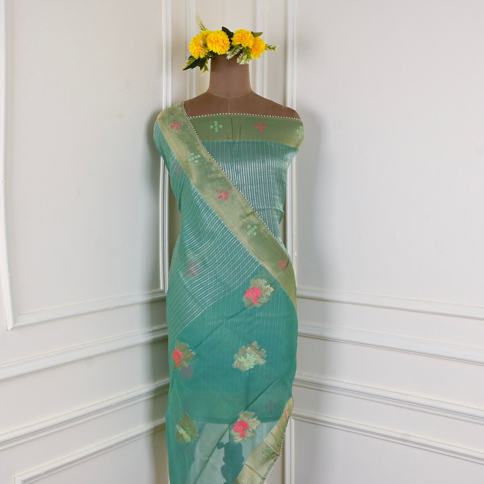 - Accompanied with an unstitched Muslin bottom and Banarasi dupatta.